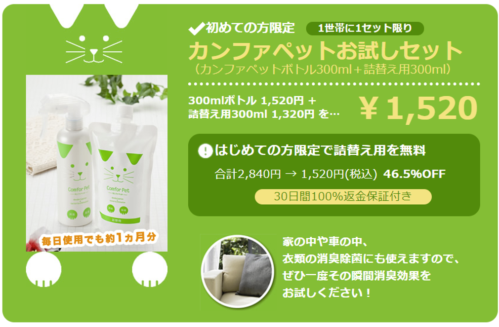 強力消臭スプレー「カンファペット」は返金保証がついている